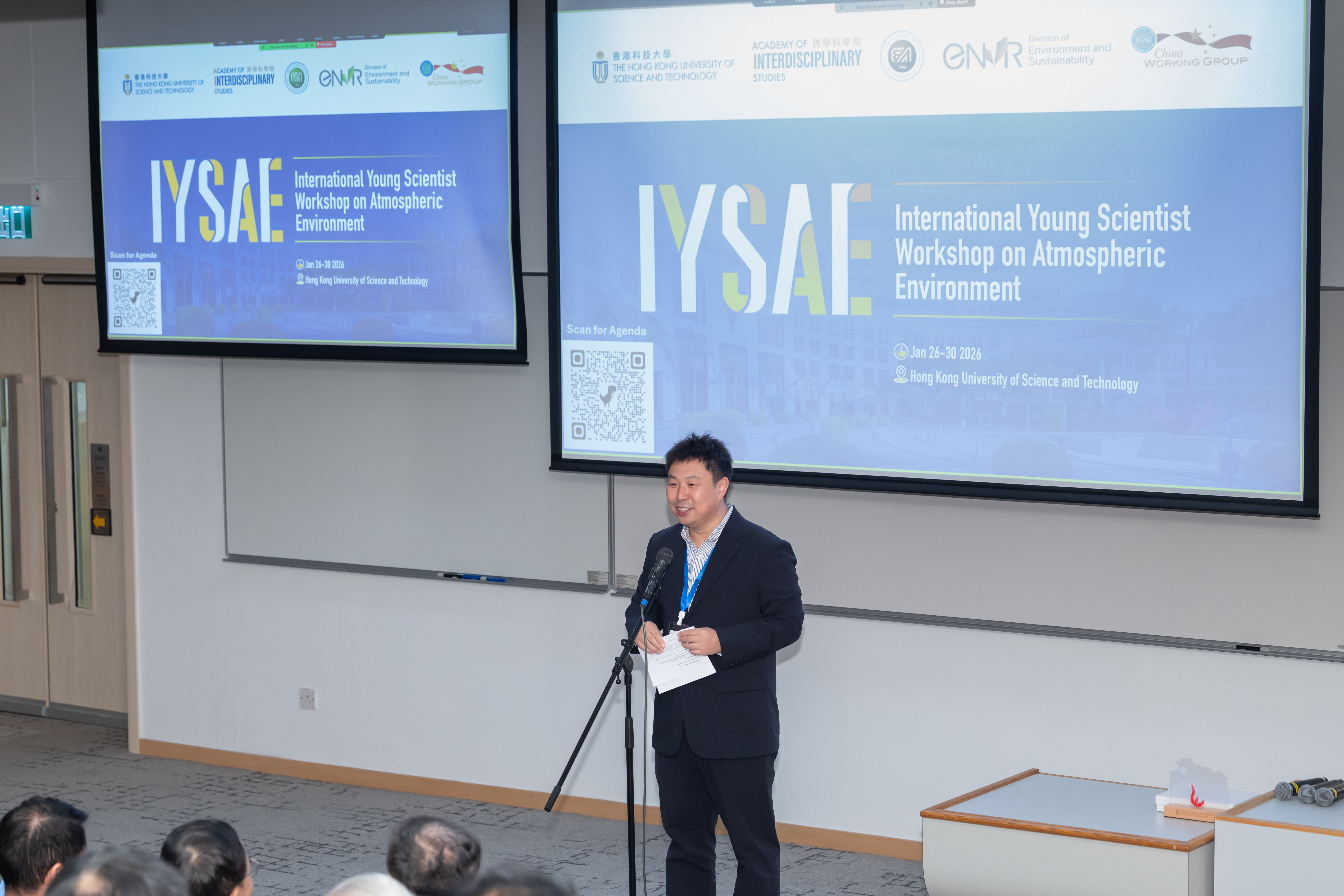Post Date: 13 February 2026 International Young Scientist Workshop on Atmospheric Environment 2026 Concluded with Great SuccessThe Division of Environment and Sustainability (ENVR) successfully hosted the International Young Scientist Workshop on Atmospheric Environment (IYSAE) 2026 from 26–30 January 2026, welcoming more than 70 young researchers from around the world to HKUST campus for an inspiring week of academic exchange and collaboration. The workshop was co-organized by the Academy of Interdisciplinary Studies, HKUST, and School of Environment and Architecture, University of Shanghai for Science and Technology (USST), and supported by Beijing-Hong Kong Exchange of Personnel Centre and the International Global Atmospheric Chemistry (IGAC) – China Working Group. The opening ceremony was chaired by the main organizer, Prof. Zhe Wang from ENVR, and featured welcome remarks from distinguished guests: Prof. Jimmy FUNG, Associate Provost (Teaching & Learning) of HKUST; Mr. Heting DU, Deputy General Manager of Beijing-Hong Kong Exchange of Personnel Centre; Dr. Vincent CHEUNG, Senior Environmental Protection Officer of Environmental Protection Department; Prof. Zhi NING, Associate Dean of Academy of Interdisciplinary Studies; and Prof. Hongliang ZHANG, Dean and Professor, School of Environment and Architecture, USST.